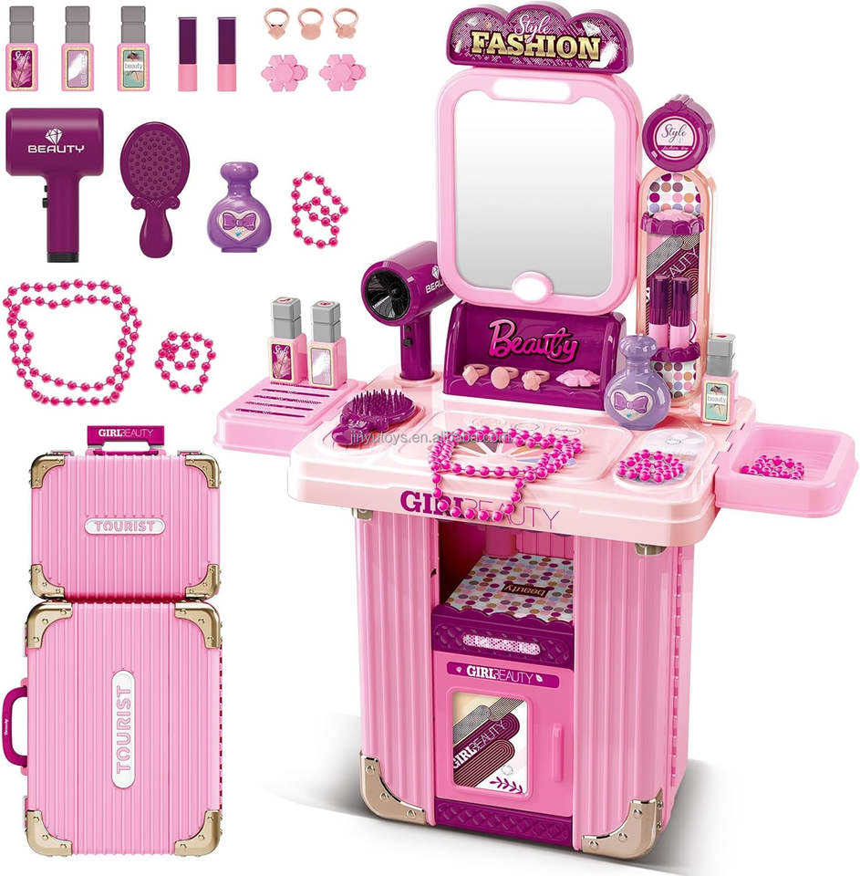 Table de maquillage pour tout-petits, ensemble de jeu de beauté pour filles, valise de maquillage de voyage, ensemble d'accessoires de mode, jouets