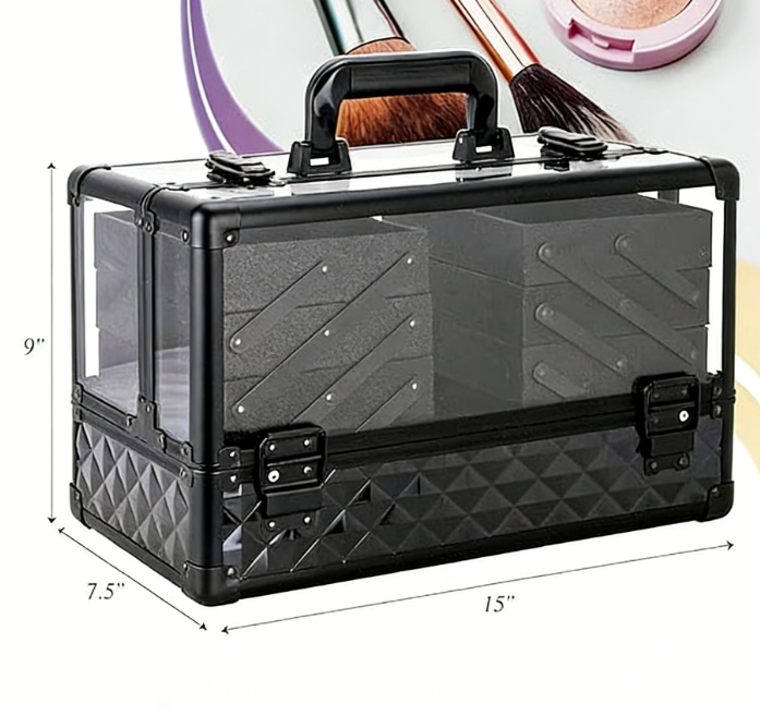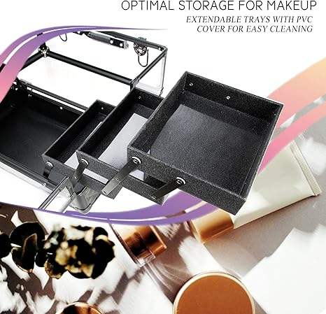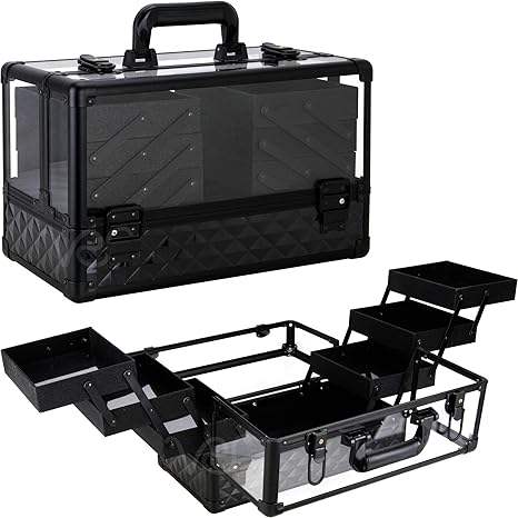 Valise à maquillage 14 pouces en acrylique grande valise à cosmétiques portable 6 plateaux boîte de rangement professionnelle
