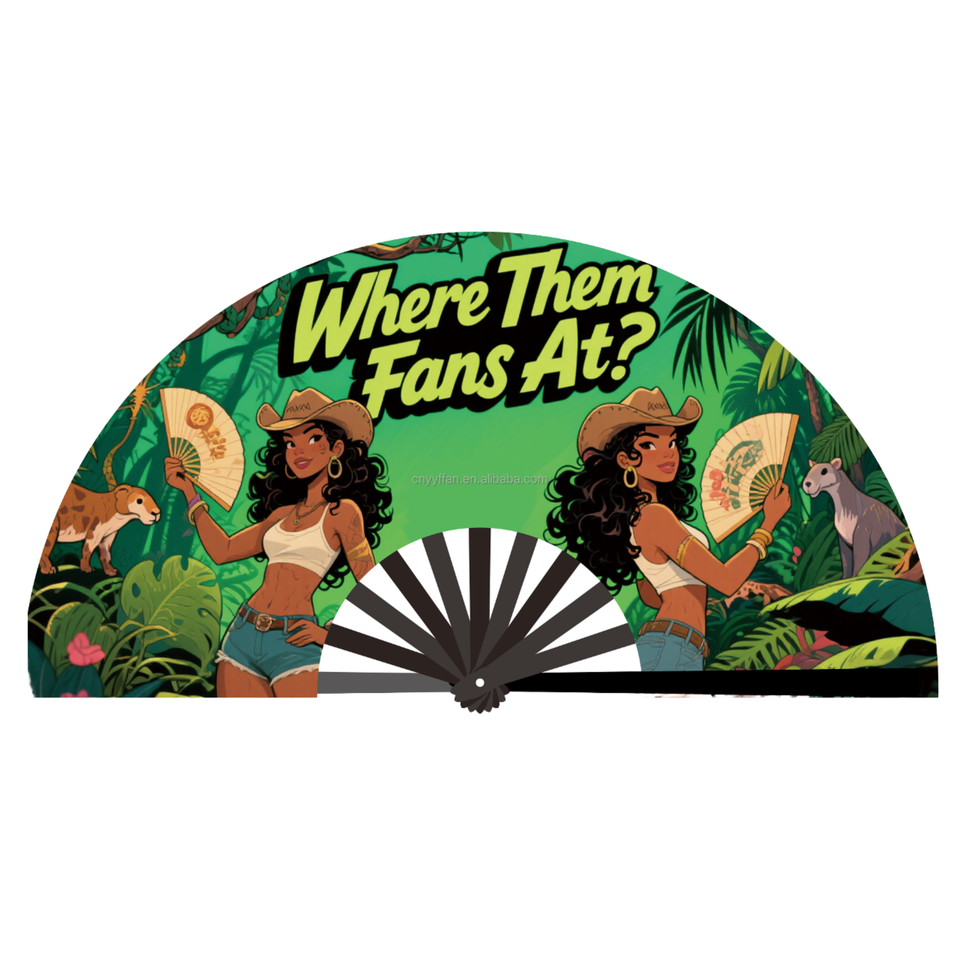 Éventail pliant personnalisé en plastique et bambou pour festivals de musique, événements de mariage, grande taille