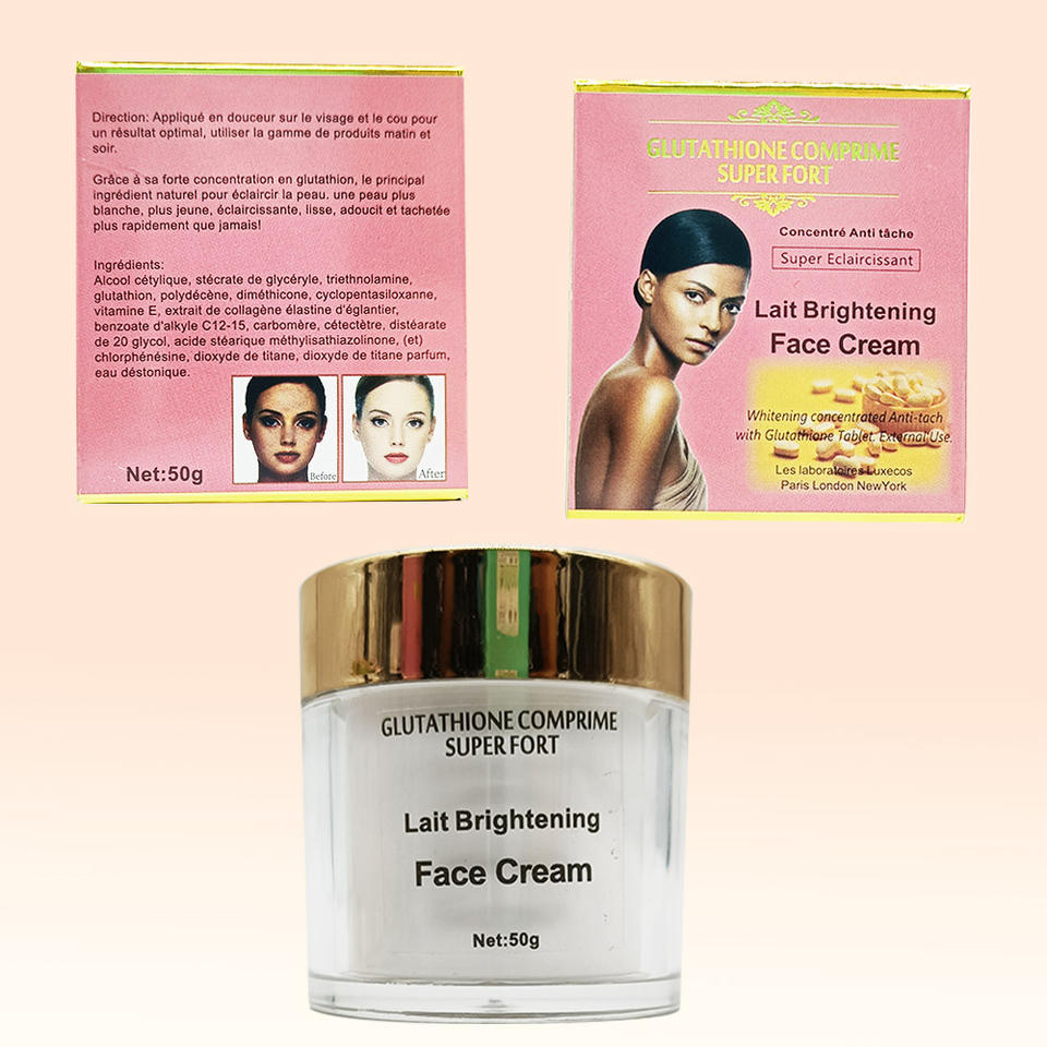 Crème Visage Naturelle Éclaircissante au Gluta pour une Peau Plus Rapide à Blanchir, Plus Jeune, Plus Lisse, Plus Douce et Éliminant les Taches