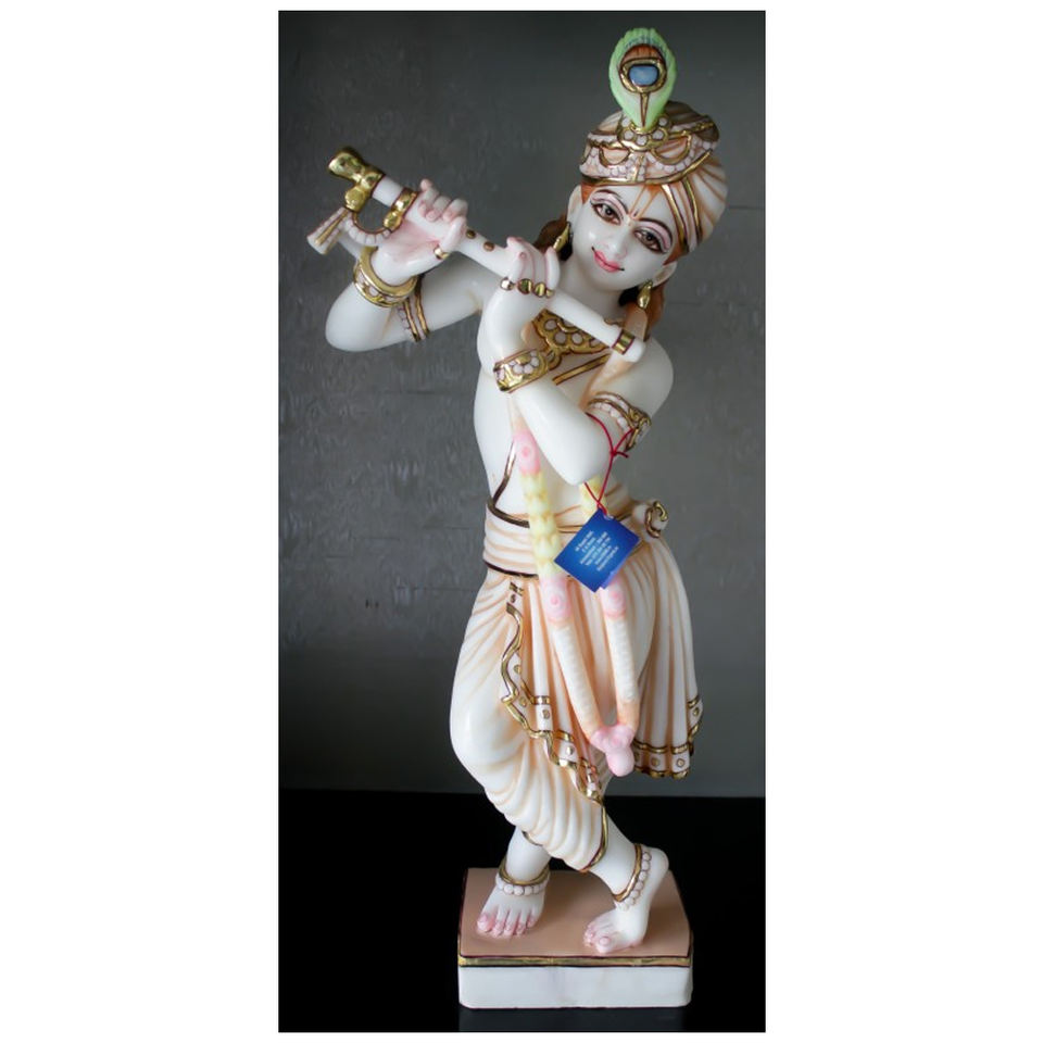 Nom du produit:Makrana marbre fait à la main Krishna Statue avec jouer de la flûte