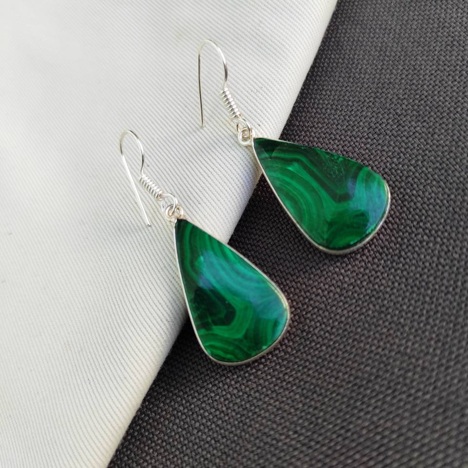 Product name:Malachite Brass Hoops Earrings
