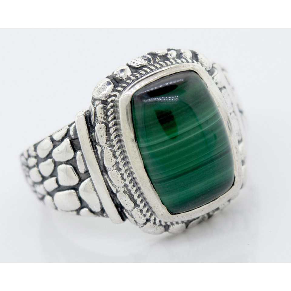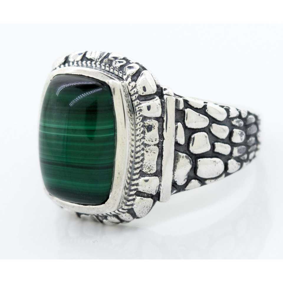 Malachite. Bague chevalière en argent 925 avec motif en écailles de dragon Tailles 9-13