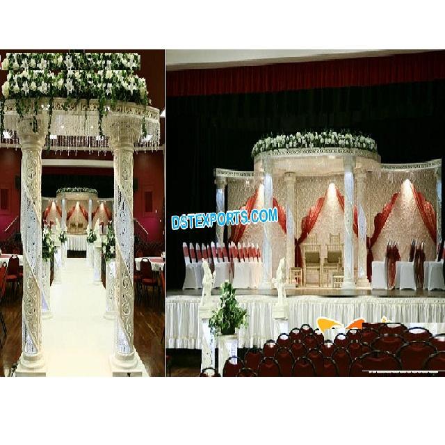 Décoration de mariage malais cristal Mandapam piliers en cristal éclairé blanc mariage Mandap Grand lieu de mariage cristal Mandaps