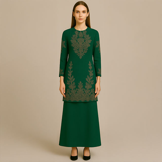 Ensemble deux pièces modeste Baju Kurung Style de broderie malaisienne fait à la main respirant pour les mariages Ramadan Eid grande taille amicale