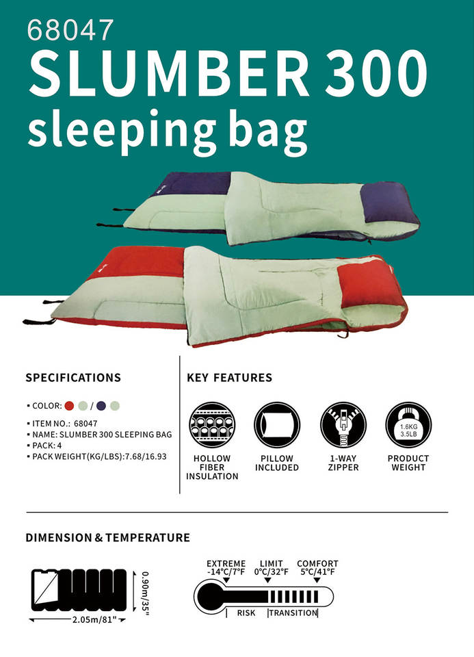 Catégorie d'échelle de température de sac de couchage:Sac de couchage d'hiver, Sac de couchage d'été