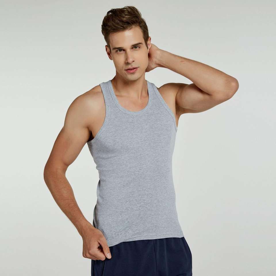 Male Casual Singlet Vest Undershirt Solid Color Gym Tank Tops Fitness Bodybuilding Workout Cotton Sleeveless Shirt Undershirts