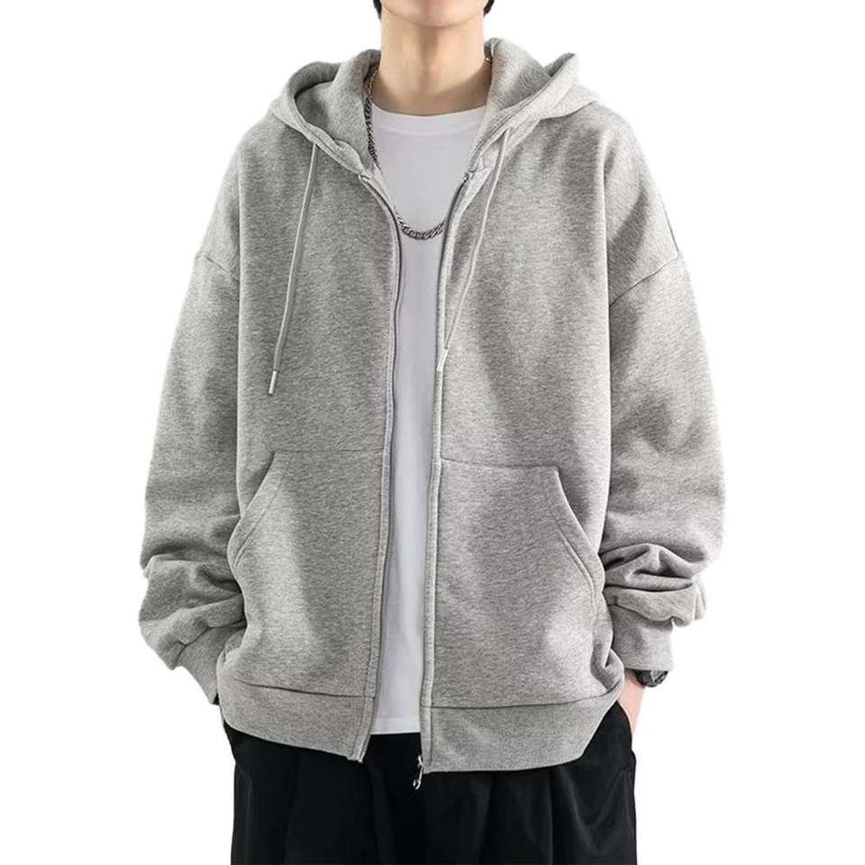 Male Clothes Black Solid Sweatshirt for Men Full Zip up Hooded Hoodies Winter Offers High Quality Korean Style - Black, XXL