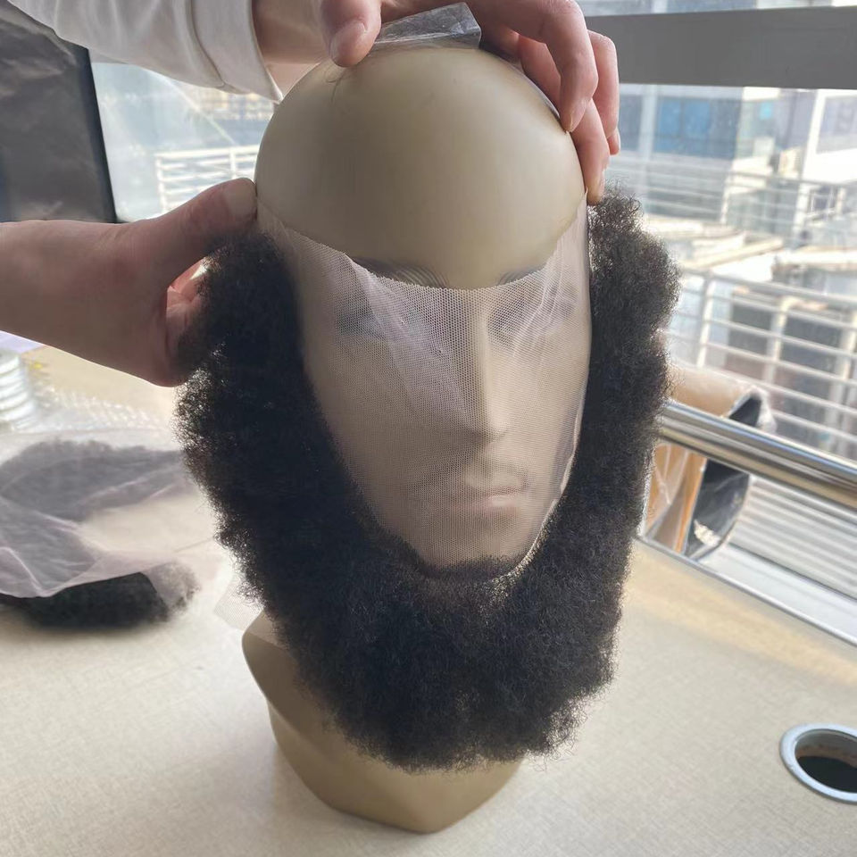 Homme personnalisé barbe 100% vrais cheveux humains pleine dentelle fait à la main naturel noir fausse moustache barbe pour homme noir
