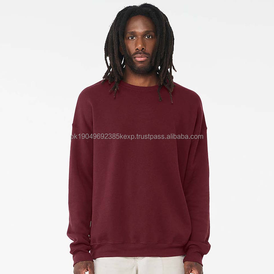 Sweat-shirt décontracté pour homme, couleur unie, manches longues, polaire, fermeture éclair, épaules tombantes, col rond, respirant, brodé