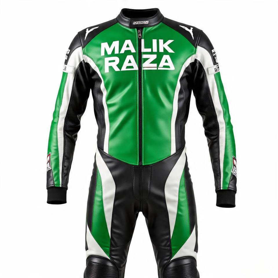 Malik Raza Combinaison de moto sur mesure, votre conception, cuirs de course blindés CE, durables et flexibles, votre look de signature