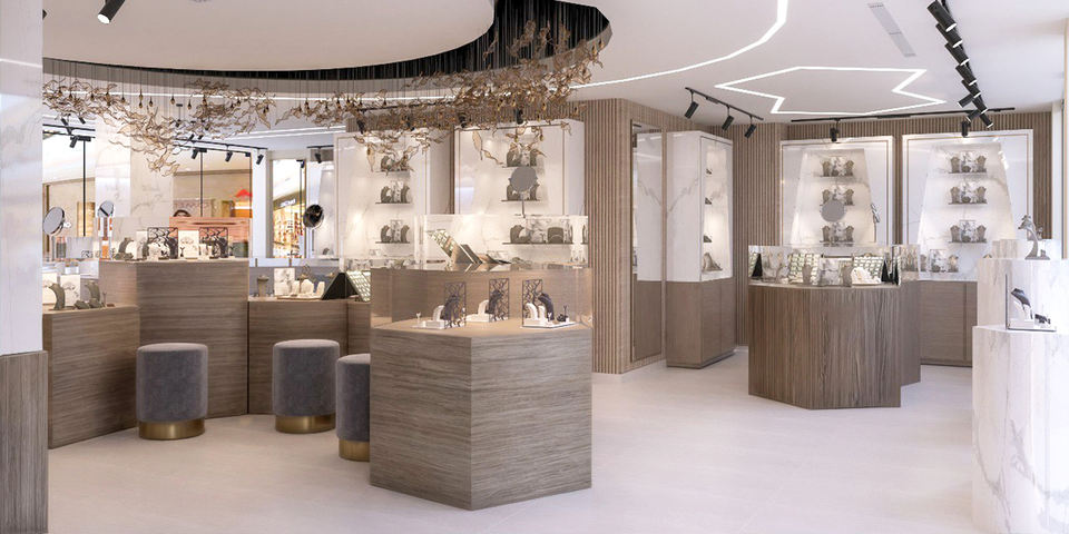 Center commercial, Centre commercial de luxe, Magasin de détail de bijoux, Salle d'exposition de bijouxLieu d'utilisation
