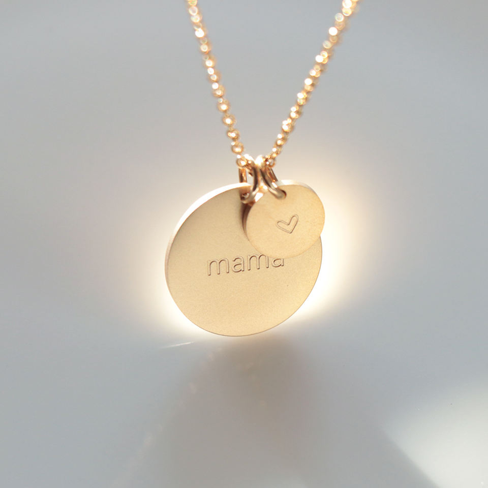 Bijoux pour maman collier personnalisé en acier inoxydable finition mate plaqué or 18 carats avec breloque disque collier pour maman