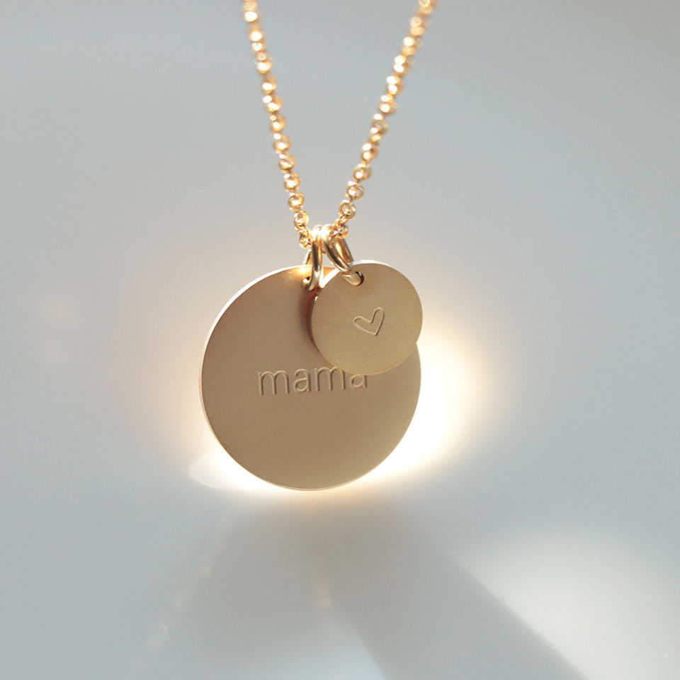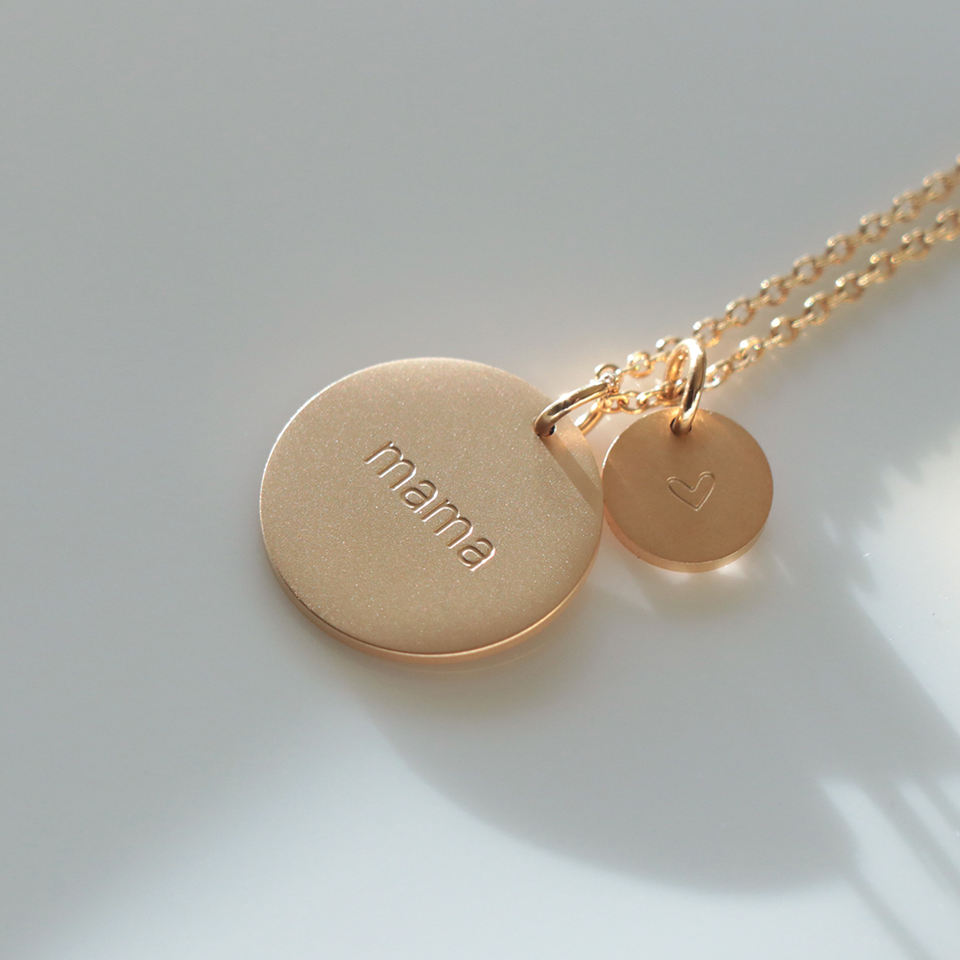 Bijoux de maman personnalisé en acier inoxydable finition mate plaqué or 18 carats disque breloque pièce de monnaie collier de maman