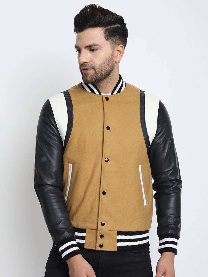 Vestes de baseball pour hommes Corps en laine avec manches en cuir Vestes décontractées d'hiver avec taille et design personnalisés
