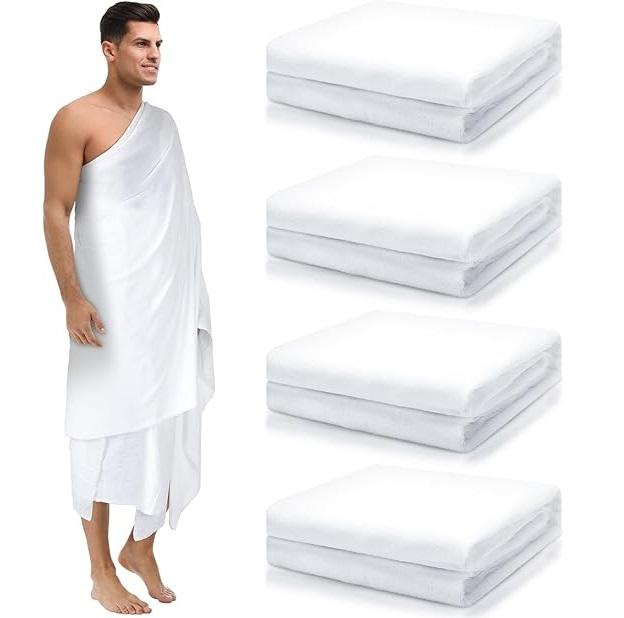 Ensemble d'Ihram Blanc pour Homme Grande Taille, Essentiel pour le Hajj et l'Omra à La Mecque, 2 Pièces, Serviettes Respirantes en Coton