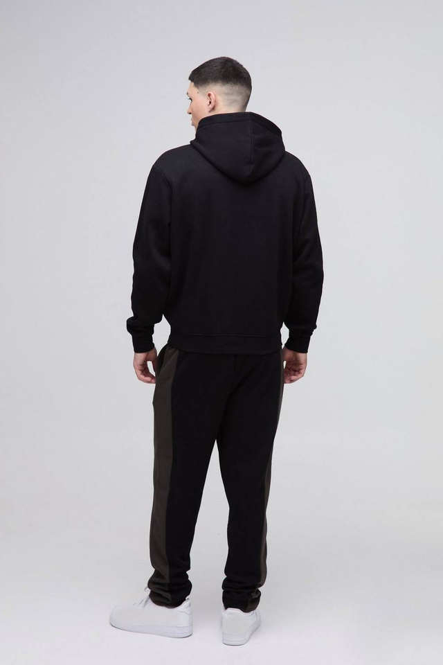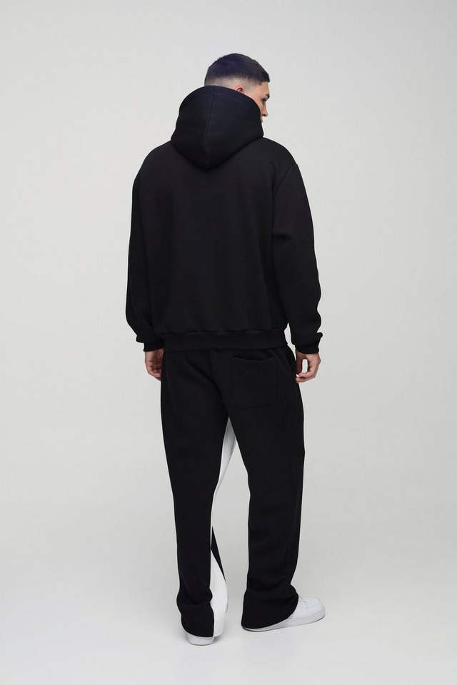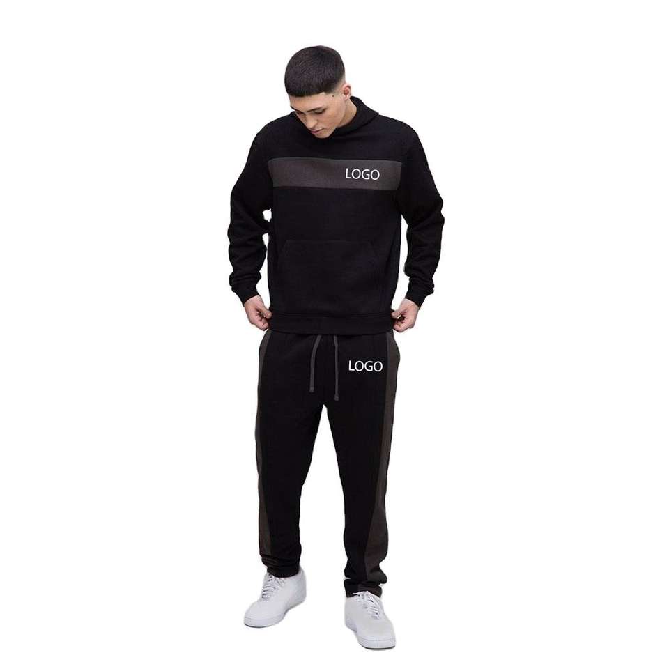 Ensemble de survêtement unisexe oversize de couleur unie pour homme, sweat-shirt à capuche court à blocs de couleur et pantalon de survêtement à jambes larges superposées, streetwear, prix de gros
