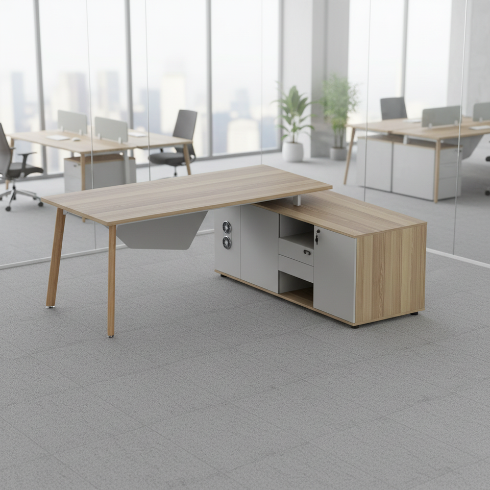 Bureau de direction avec compartiment de rangement, pieds en aluminium, moderne, durable, surface de travail pour ordinateur