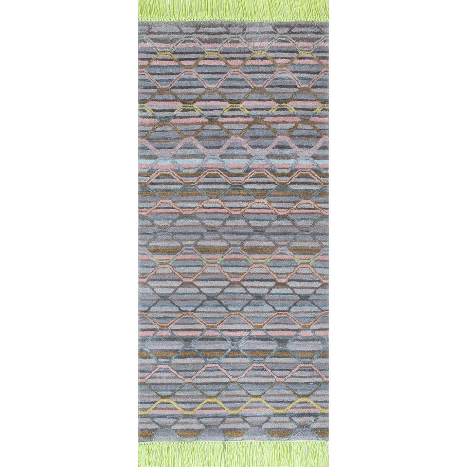 Tapis noué à la main en laine, bambou et soie à motif géométrique Manchaha, haute qualité, gris et noir, rectangulaire, pour la maison et le couloir - Les-1330
