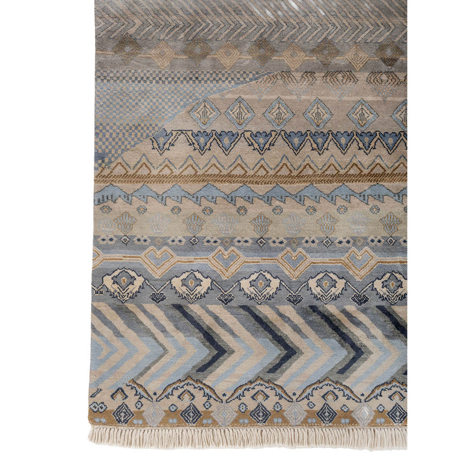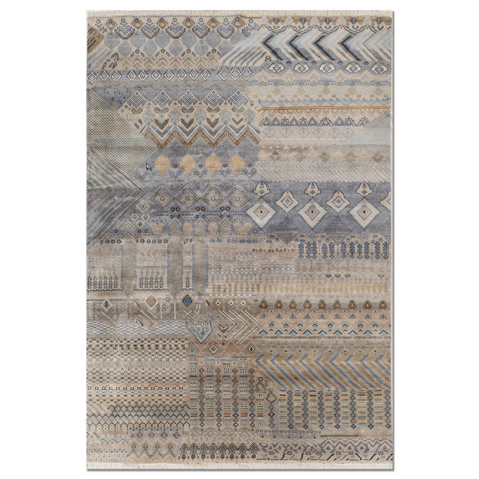 Tapis en soie noué à la main Manchaha, gris et noir, géométrique, pour salon, design rectangulaire en patchwork, pour la maison, Car-LUV-644