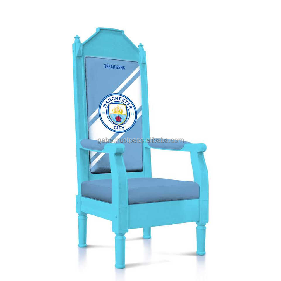 Chaise de Roi en Bois Massif Personnalisée Manchester City Football Club Style Art Déco Décoration d'Anniversaire pour la Maison Originale du Royaume-Uni