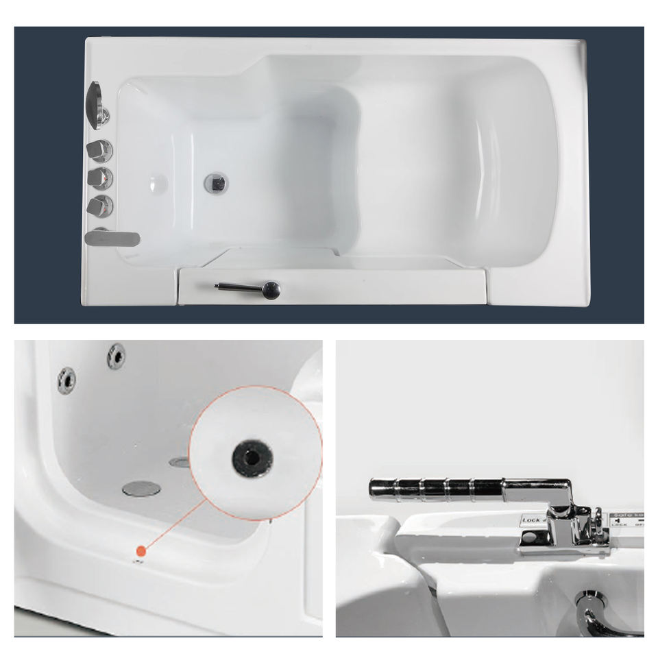 Mandrex Autoportant Petite Taille Rectangle Acrylique Walk-In Assise Massage Baignoire Débordement Antidérapant Ouverture Latérale Aide au Trempage