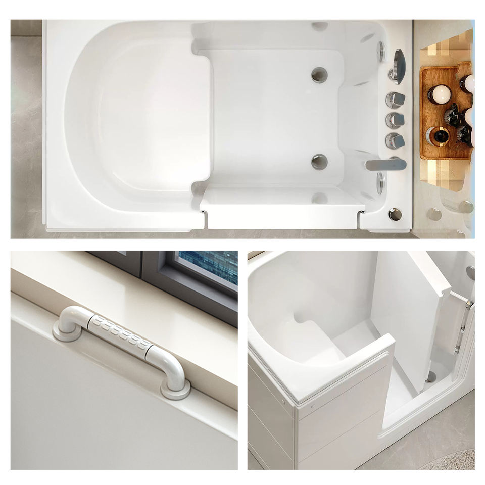 Mandrex Petit Rectangle Autoportant Acrylique Walk-In Assise Massage Combo Air Whirlpool Aide au Bain pour Personnes Âgées Egouttoir