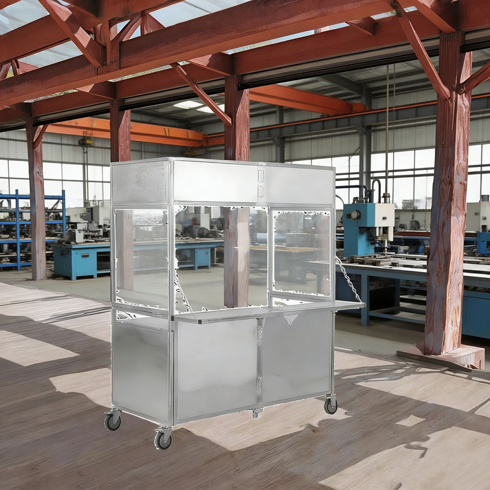Chariot pliable maniable en acier inoxydable à 4 roues pour la vente de glaces, café, snacks, hot-dogs, bonbons, chips, résistant à la rouille