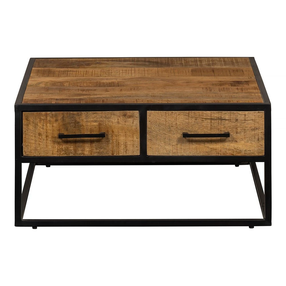 Table basse en bois de manguier 80x80 cm carrée, table centrale en bois massif, meuble de salon rustique, finition naturelle, durable, fait main