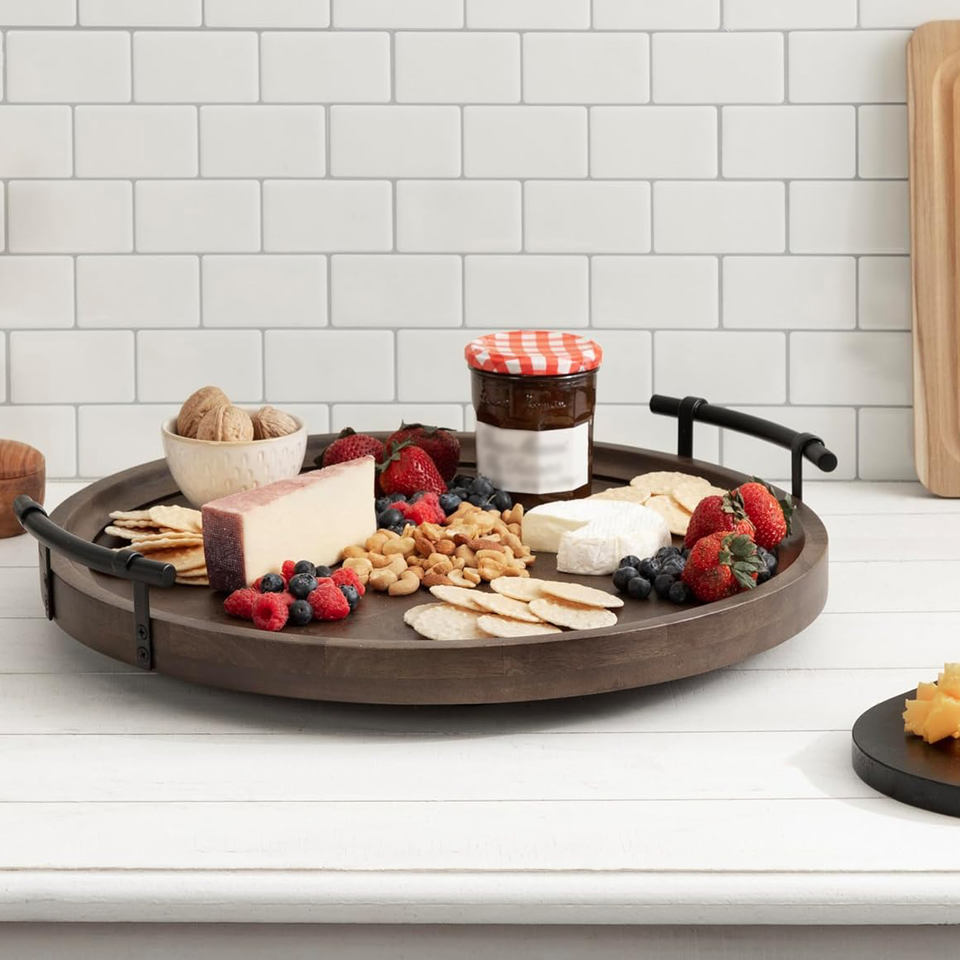 Plateau rond Lazy Susan en bois de manguier Organisateur de comptoir en bois Utilisation polyvalente comme cuisine, table basse et plateau ottoman de salon