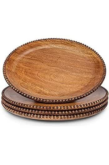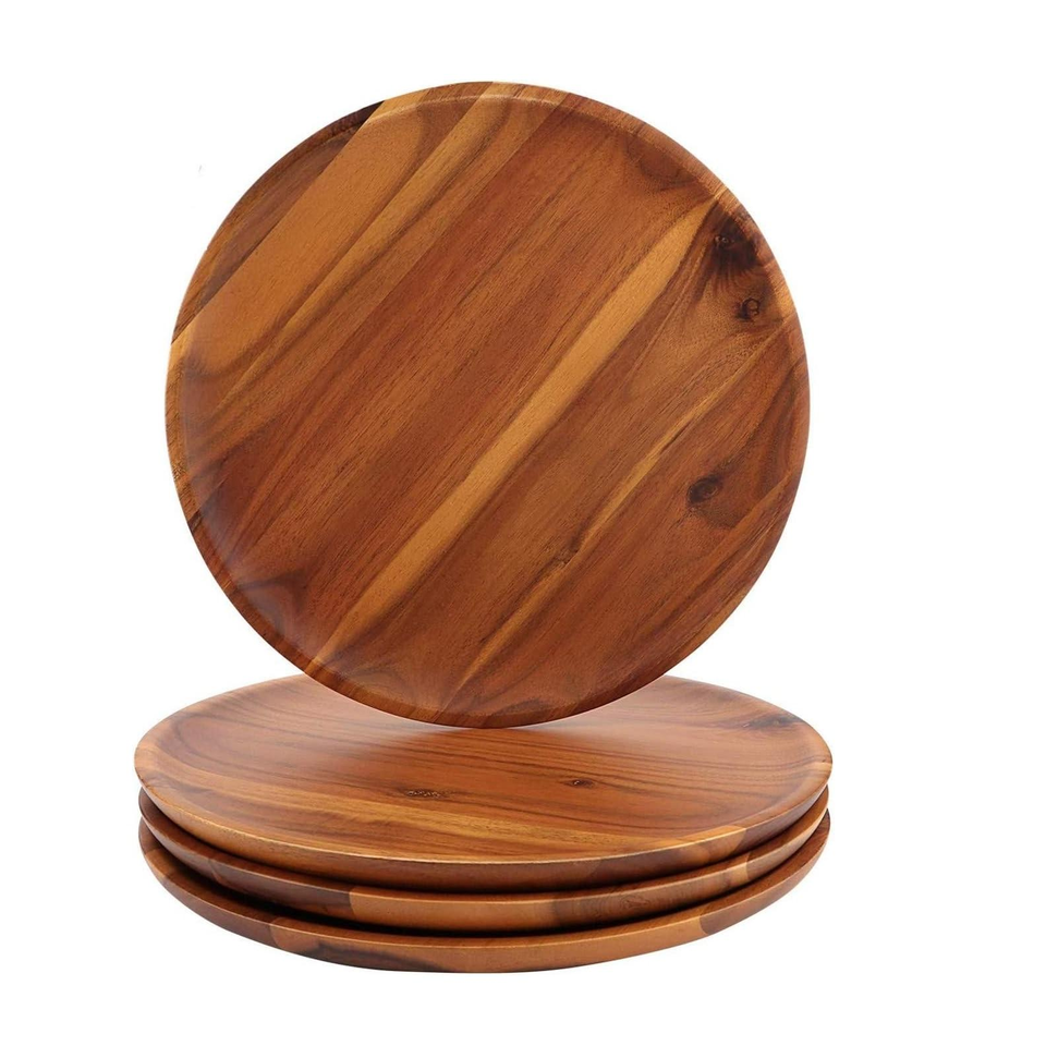 Assiette ronde en bois de manguier, couleur naturelle, pour servir les aliments, assiette de service pour la maison et les hôtels, plats et assiettes