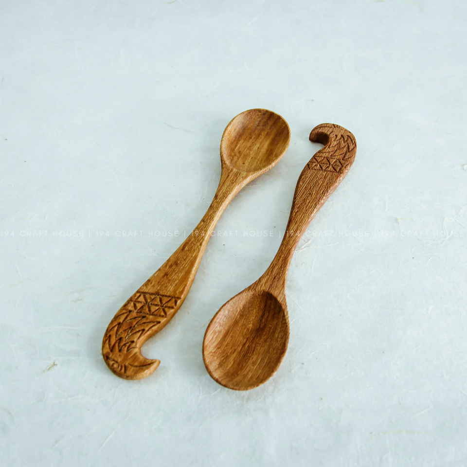 Cuillère en bois mangue fleur imprimé manche cuillère ensemble Logo personnalisé accepté cuillère en bois faite à la main