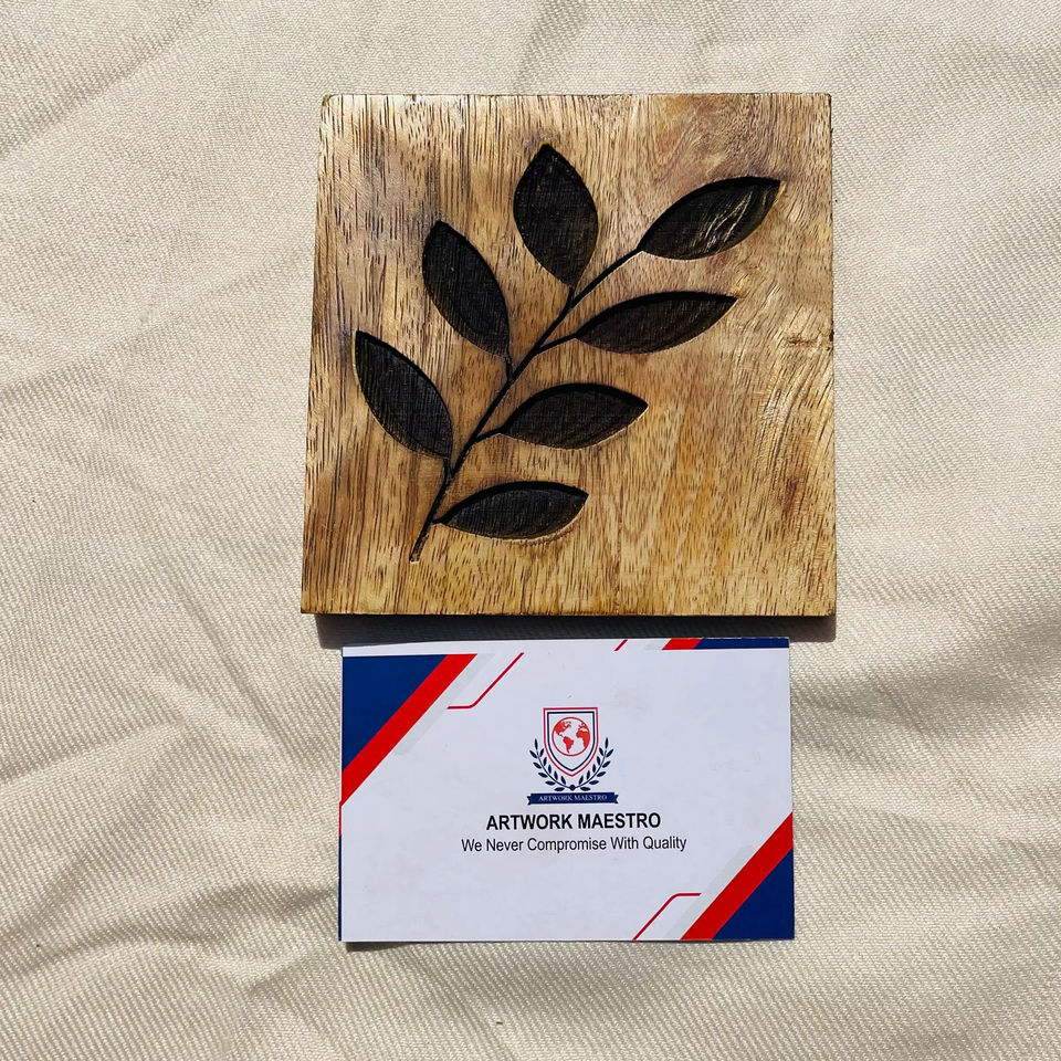 Sous-verre rond en bois de manguier avec motif d'aigle gravé - vente en gros - décoration de salle à manger
