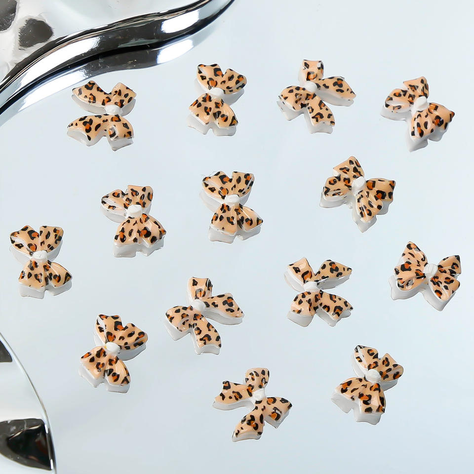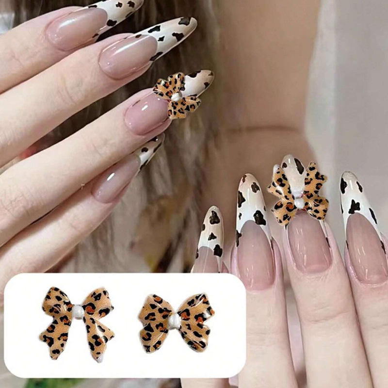 Manucure avancée 3D imprimé léopard ruban arc ongles ornements Maillard couleur correspondant Nail Art décoration