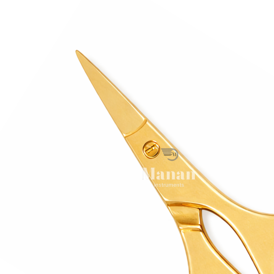 Ciseaux à cuticules de haute qualité pour manucure et pédicure, couleur or, acier inoxydable, poignée ergonomique pour droitiers, durables et tranchants