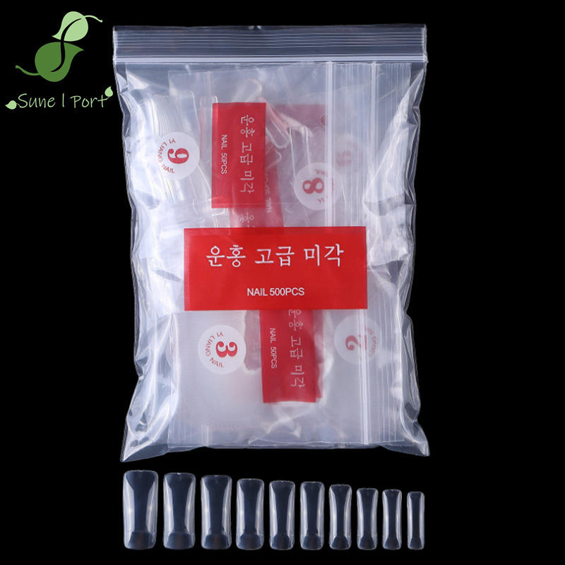 Pièces de manucure, demi-couverture, 500 pièces, sac standard coréen, faux ongles en porcelaine blanche transparente, 0-9, carré, ciel étoilé avec colle