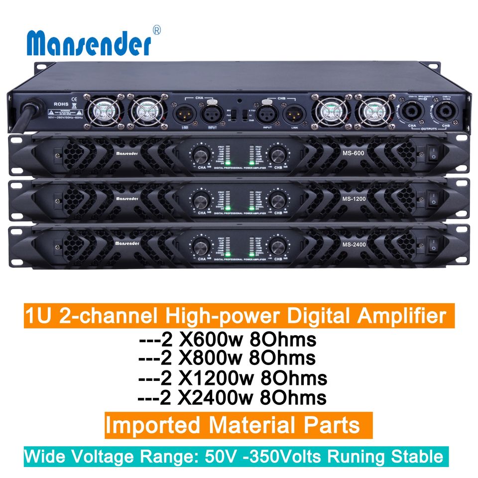 Mansender TOP Audio professionnel 1U classe D amplificateur numérique 2 canaux grande puissance 2400 Watts puissance importé matériel pièces ampli