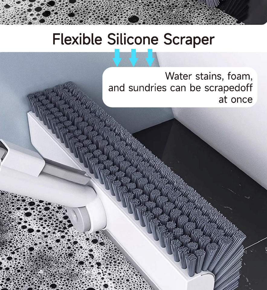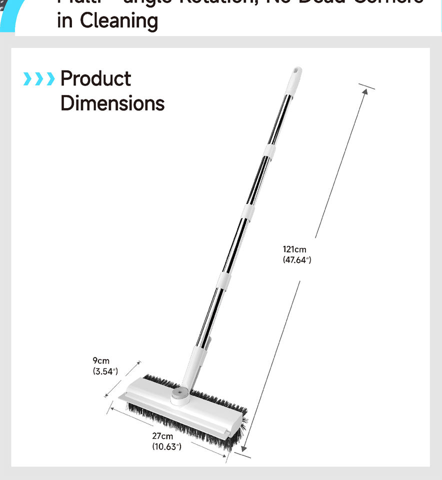 Manuel 360 ° Brosse de nettoyage rotative pour sols, manche long réglable, nettoyeur de sol 3-en-1 pour salle de bain avec grattoir OEM