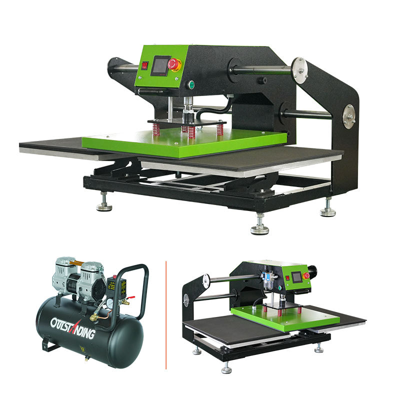 Imprimante manuelle à plat avec cylindre pneumatique à double piston 80*100 pour vêtements Presse à chaud pneumatique neuve