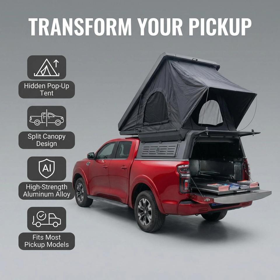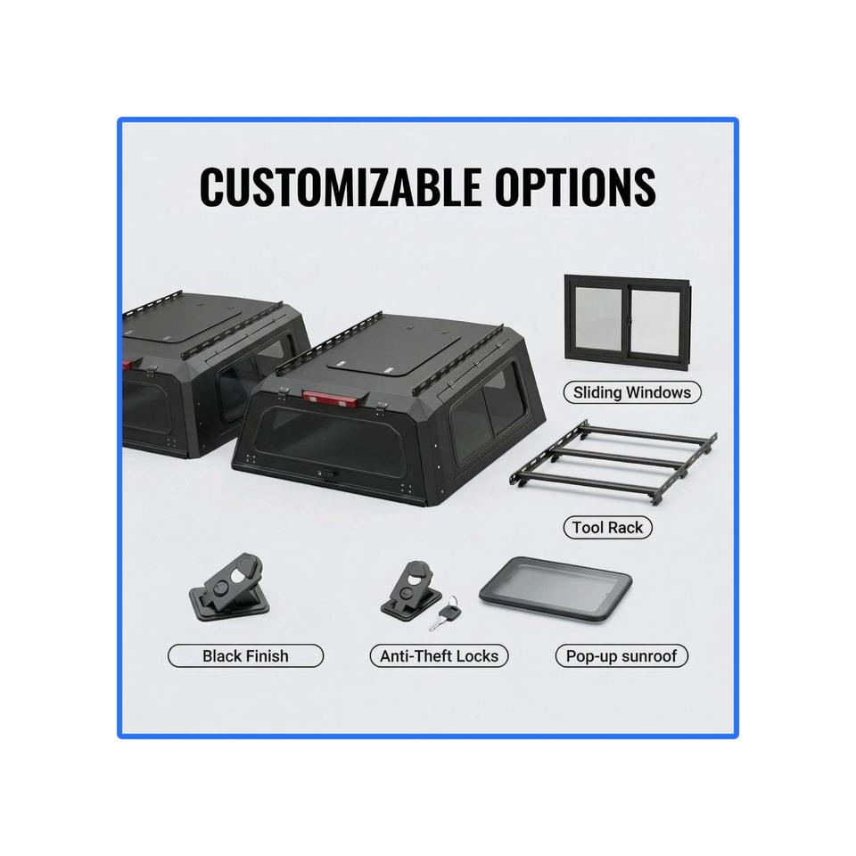 Toyota Hilux 2021-2023 Rocco Pickup Canopy Gullwing Double Cabine, boîte à bagages étanche à fermeture électronique, couvercle rigide en aluminium
