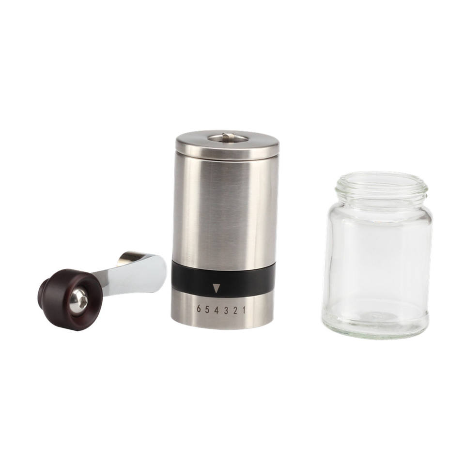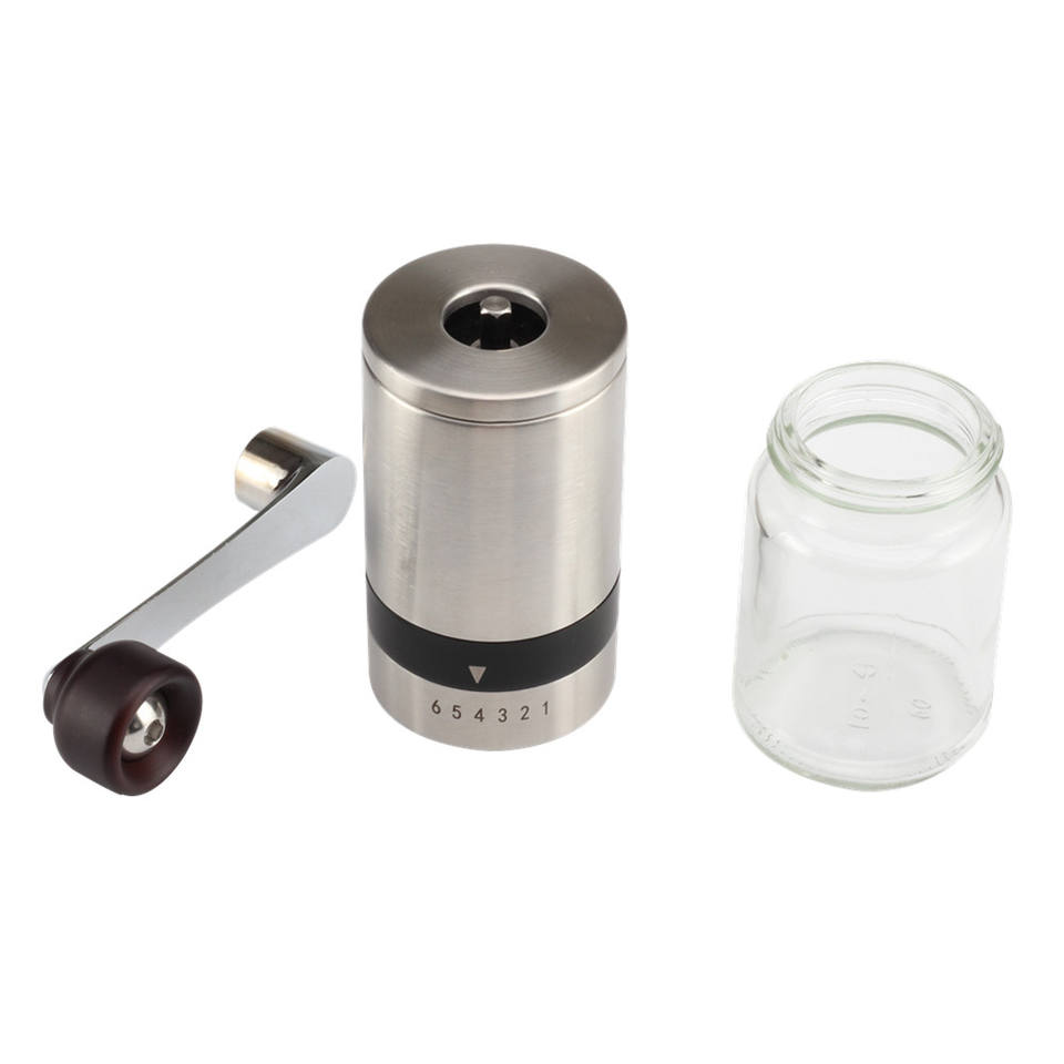 Moulin à café manuel, moulin à café à main avec 6 niveaux de mouture, acier inoxydable et verre