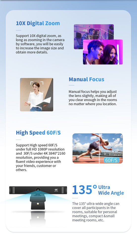 Mise au point manuelle 135 degrés grand angle 4K HD Webcam 60FPS 8MP avec microphone USB pour PC Live Streaming Video Chat