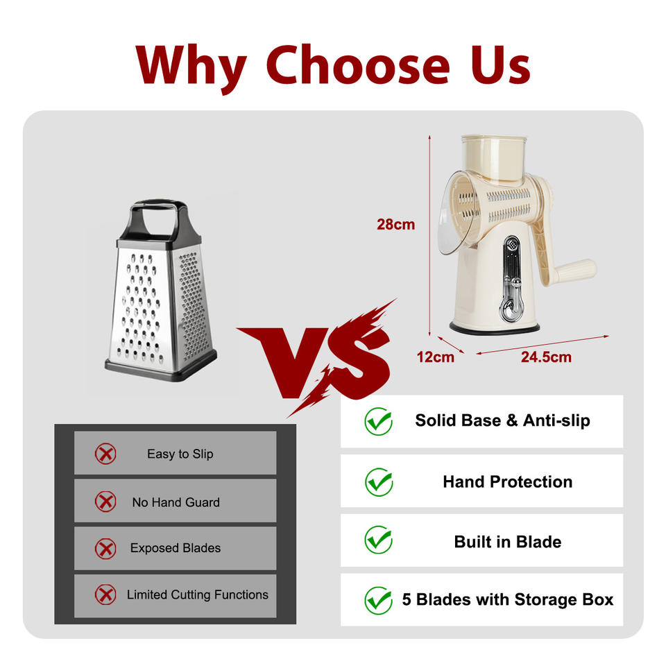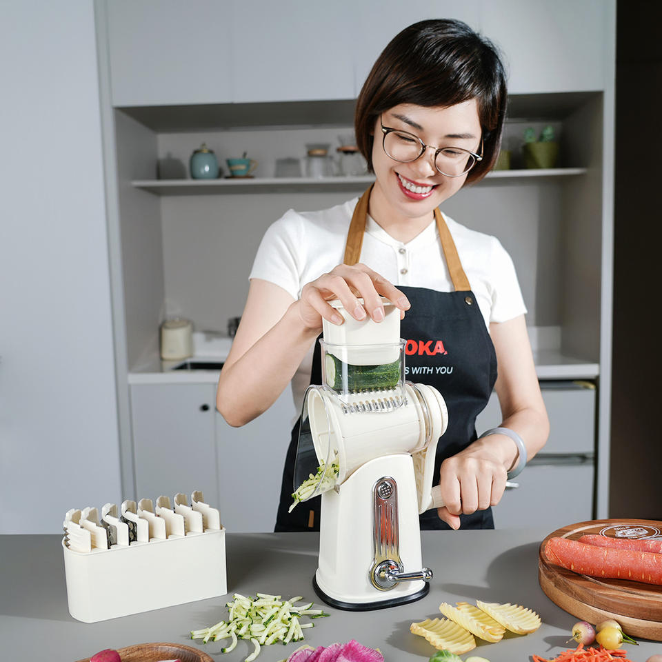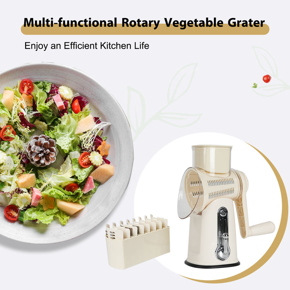 Râpe de cuisine manuelle, trancheuse à légumes, râpe à fromage rotative avec poignée, trancheuse ronde, moulin à noix avec 5 lames tambour