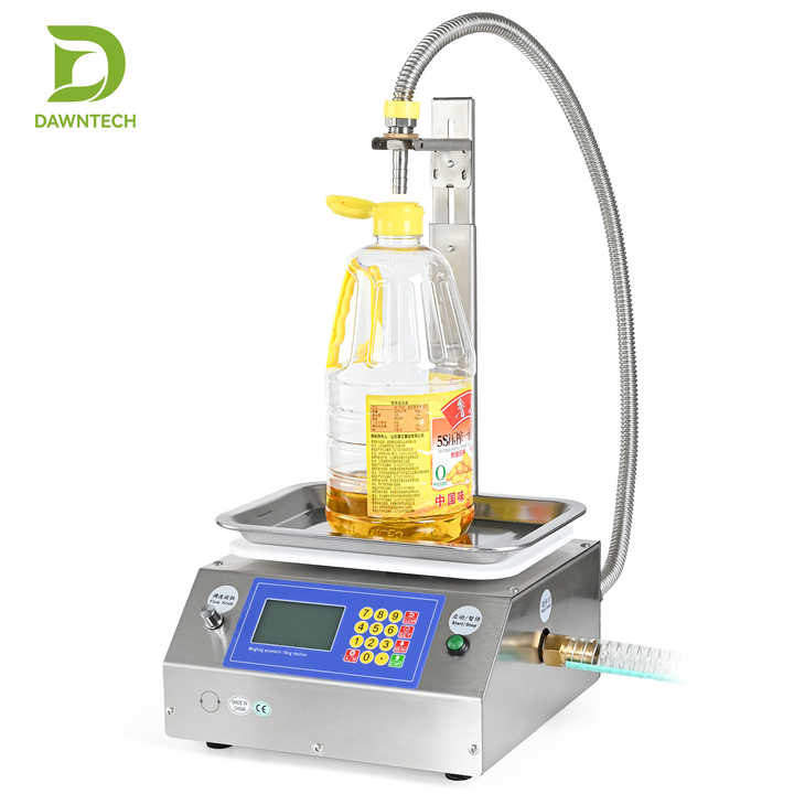 Machine de remplissage manuelle de liquides avec pompe à engrenages et balance pour eau, huile, vin, détergent, shampoing