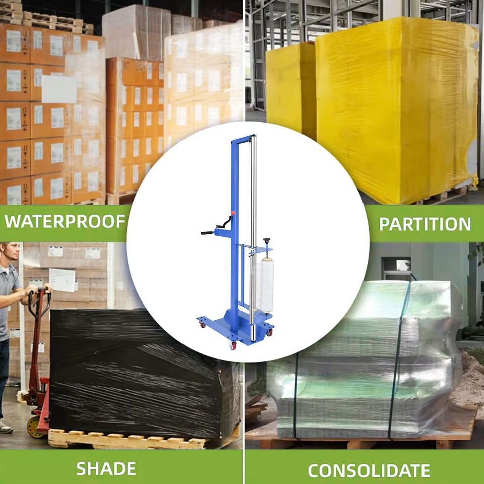 Machine d'emballage verticale manuelle pour film étirable de palettes, pour emballage industriel en entrepôt, haute efficacité