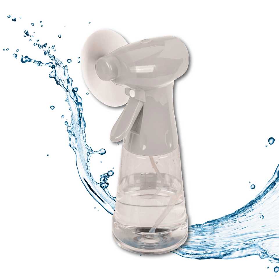Ventilateur manuel à piles avec pulvérisateur