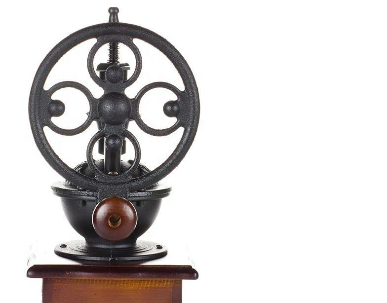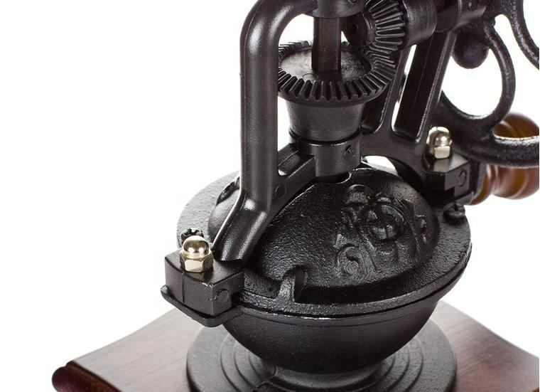 Moulin à café rétro manuel avec manche en bois, grande roue vintage à l'ancienne, moulin à café manuel avec manche en bois