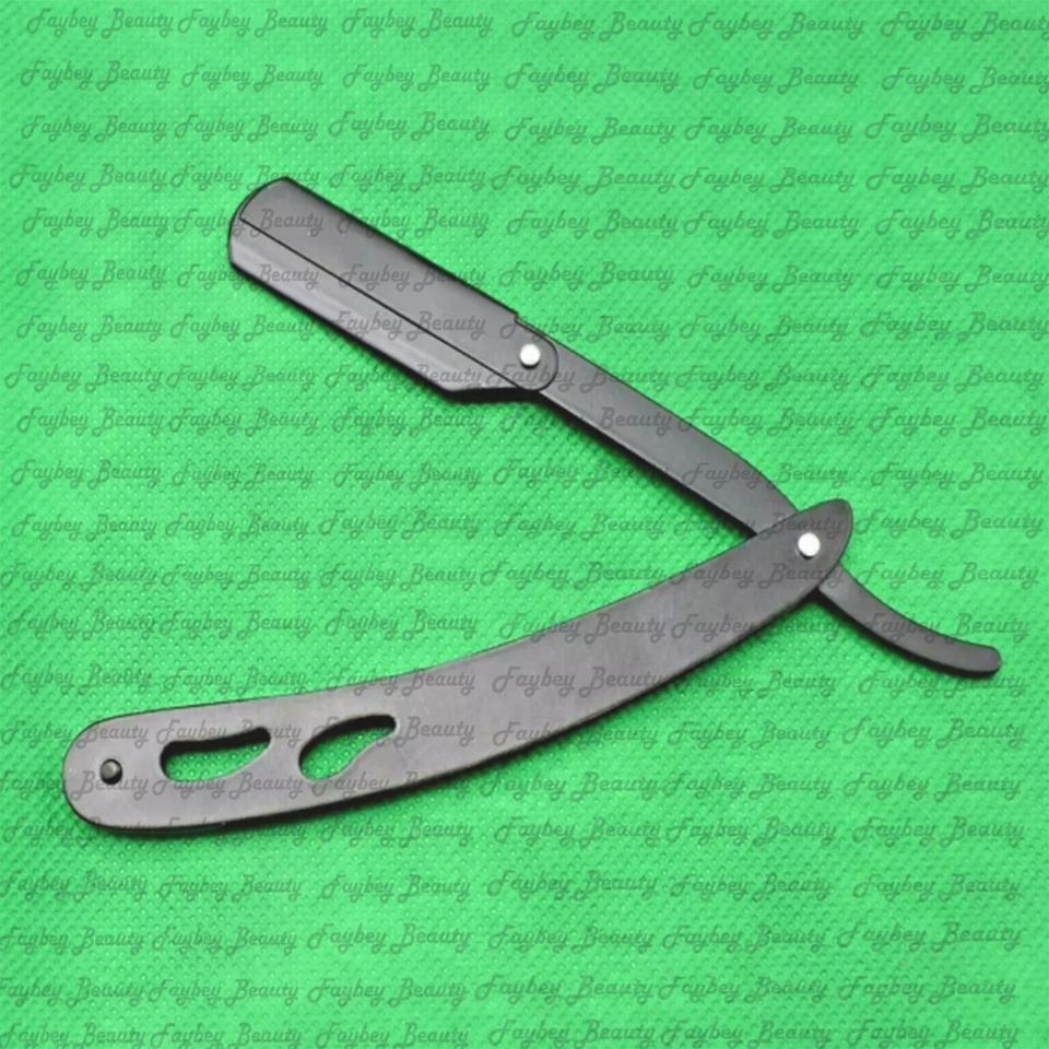 Rasoirs de barbier à manche manuel en acier Rasoirs à revêtement noir Bonne qualité Rasoir à barbe à bord droit