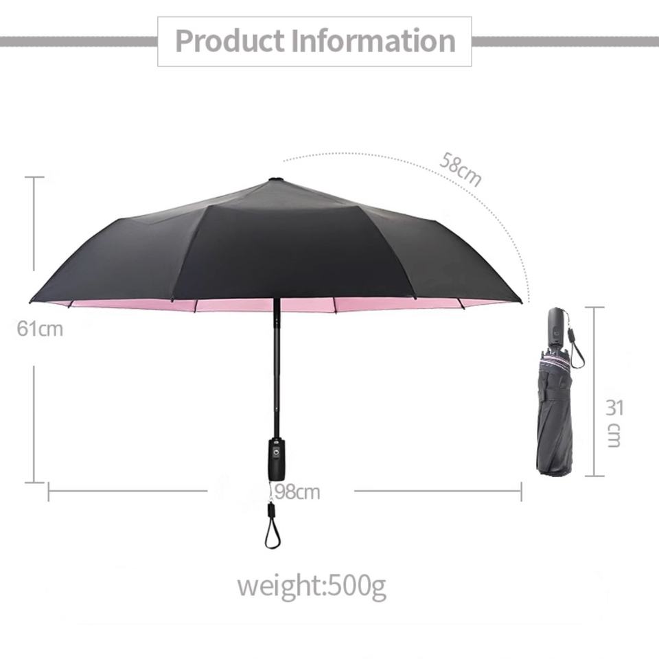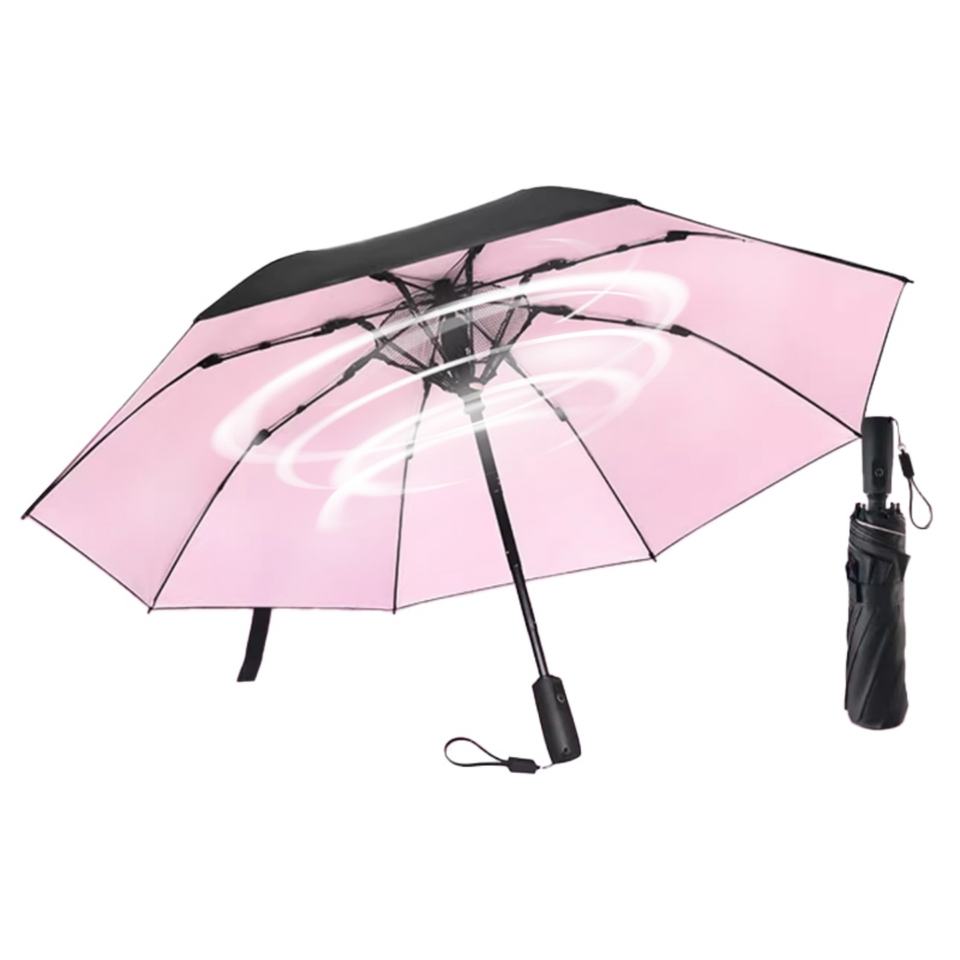 Parapluie Magique Pliant Manuel à Trois Volets avec Ventilateur, Protection UV, Logo Personnalisé, pour Refroidissement Extérieur, Golf/Plage, Toutes Saisons