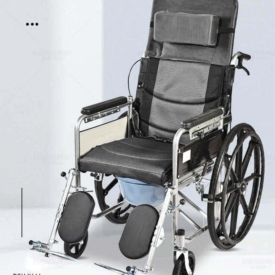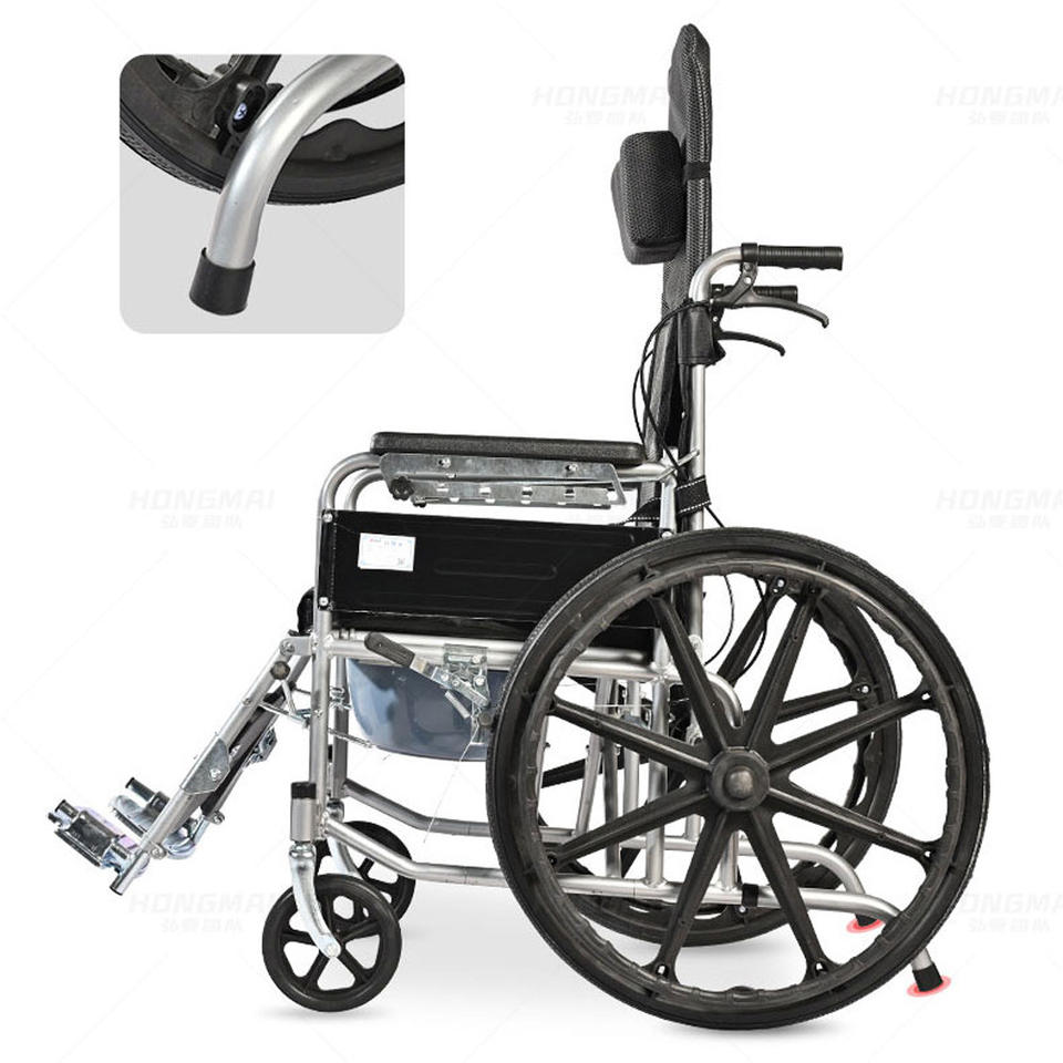 Fauteuil roulant manuel léger avec fonction toilette pour personnes âgées et handicapées, frein en U, design pliable